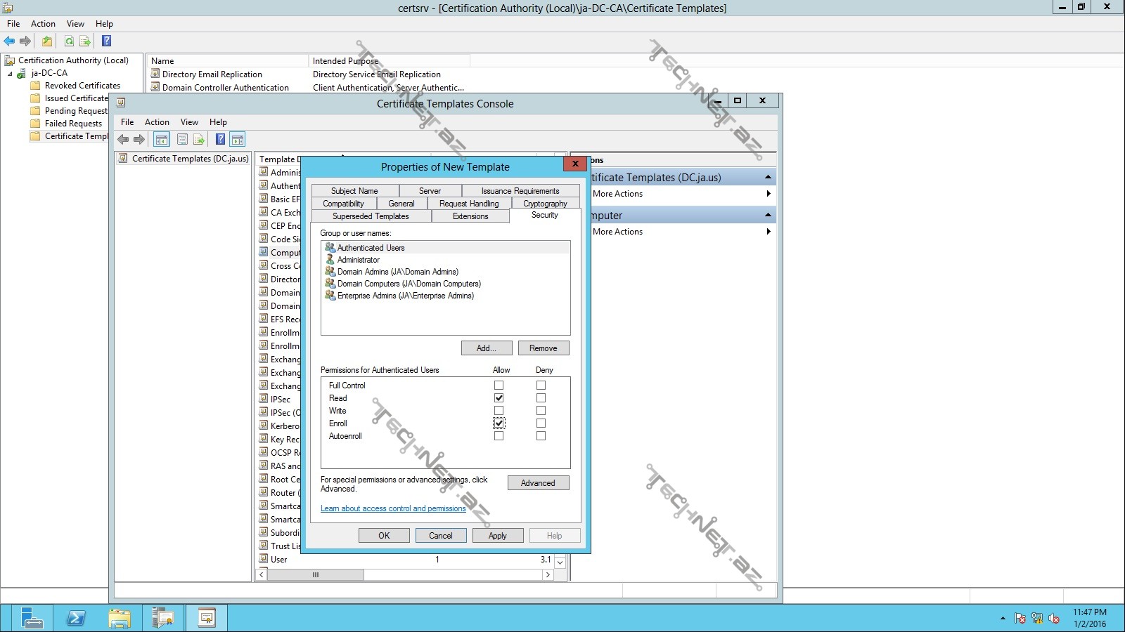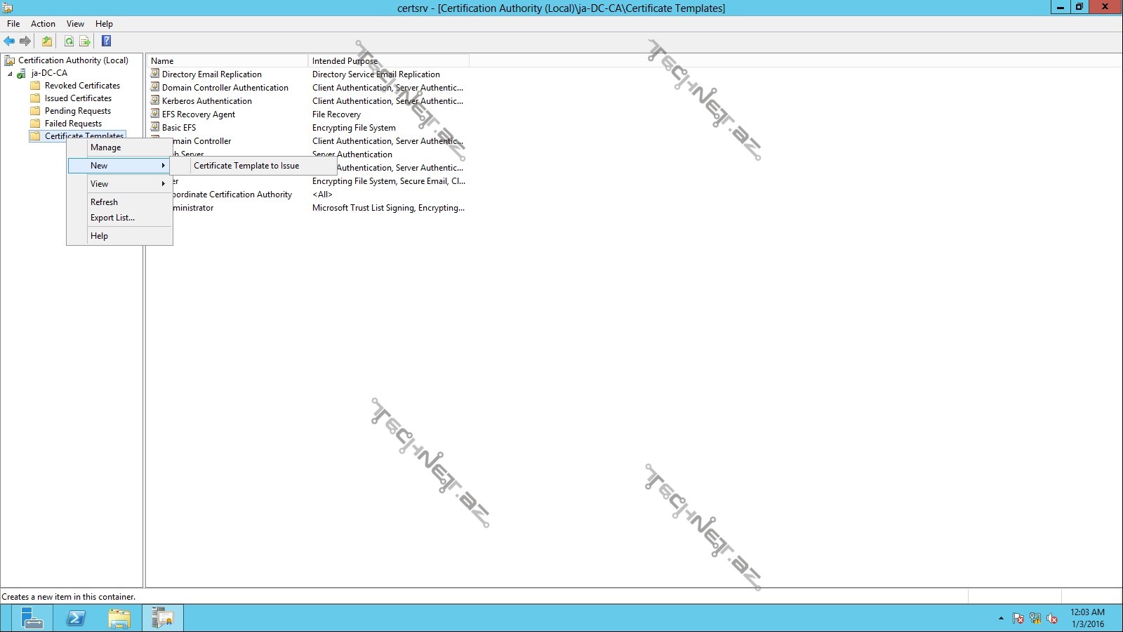 Certificate Templates Console – u bağlayırıq. Certification Authority də Certificate Templates – üzərində New bölməsində Certificate Template to Issue deyib yaratdığımız Template – i çağırırıq: