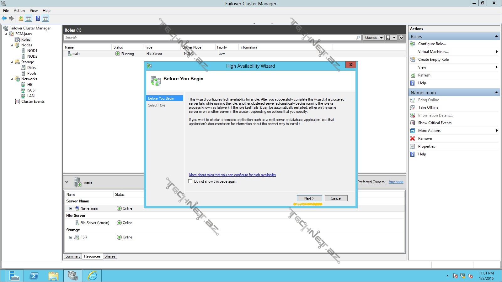 Cluster – ə daxil olan NOD1 –də bu işi yerinə yetirəcəyik. Failover Cluster Manager – də Configure Role deyirik: