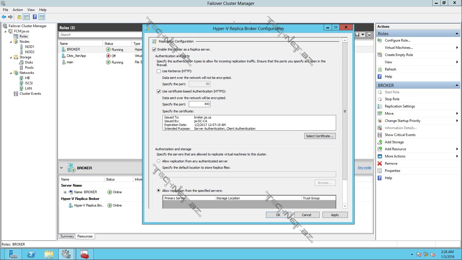 Domain mühitində Failover Cluster – lə Hyper-V server arasında Certificate-Based Authentication (HTTPS) Replica – nın qurulması