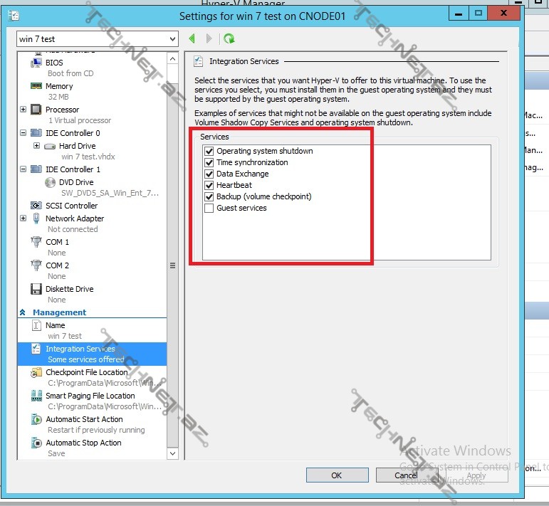 Hyper-V Data Exchange Service: Virtual maşın ilə fiziki kompüter üzərində çalışan əməliyyat sistemi arasında informasiya mübadiləsi etməyə imkan verir.
