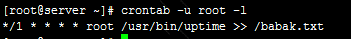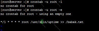 İndi isə yeni crontab yaradaq hansı ki hər bir dəqiqədən bir uptime əmri icra olunsun və eyni zamanda Babak.txt faylına yazılsın.