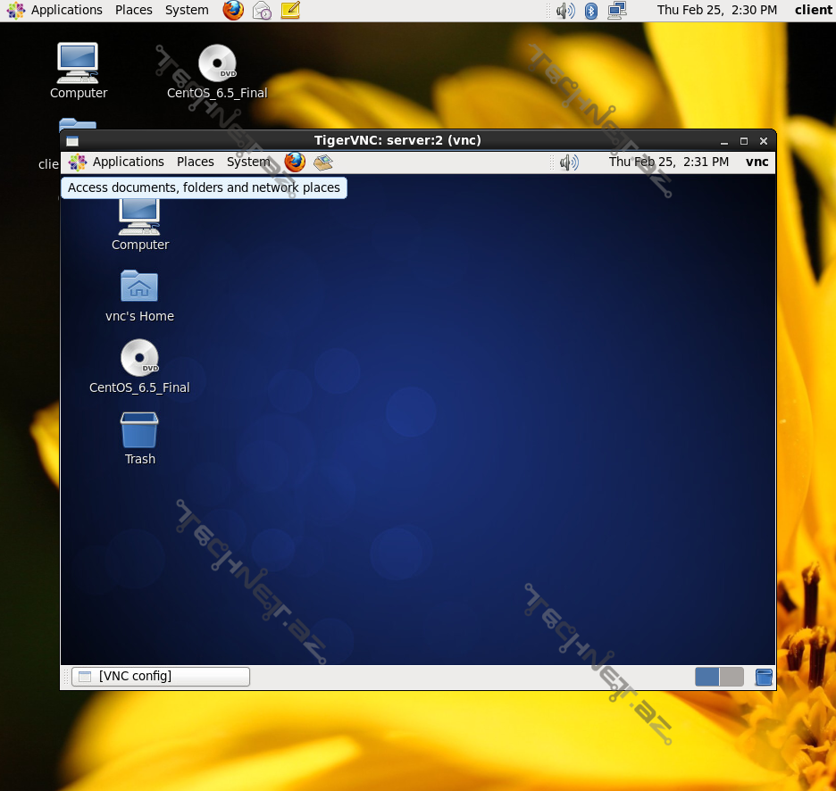 VNC-lə biz çox asanlıqla istifadəçidə yaranmış problemləri həll edə bilərik. VNC server tənzimlənməsi çox çətin deyil və çox zaman desktop paketinə yüklənmiş vəziyyətdə olur (by default).