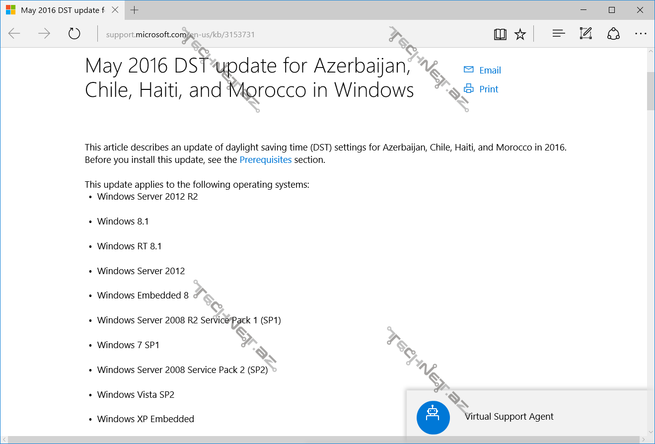- Windows Update vasitəsi ilə. Əgər sizin istifadə etdiyiniz əməliyyat sistemi yeniləmələri avtomatik alırsa, onda növbəti yeniləmələr quraşdırılan zaman müvafiq yeniləmə sizin əməliyyat sisteminə Windows Update vasitəsi ilə avtomatik olaraq quraşdırılacaqdır. Bu yolu istifadə edirsinizsə, sizdən heç bir əməliyyat və ya quraşdırma aparmaq tələb olunmur. Sadəcə əmin olun ki, KB3153731 saylı yeniləmə uğurla quraşdırılıb, saat qurşağı (UTC +04:00) Baku seçilib, saat da vaxtı düz göstərir.
