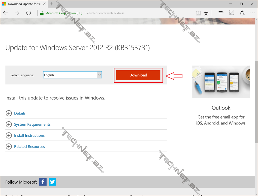 Lazım olan yeniləməni endirmək üçün müvafiq linkə gedin. Bu zaman aşağıdakı səhifəni görəcəksiniz. Orada olan məzmunla tanış olub Download düyməsini basmaqla müvafiq yeniləməni birbaşa serverə və ya başqa kompüterə endirə bilərsiniz: