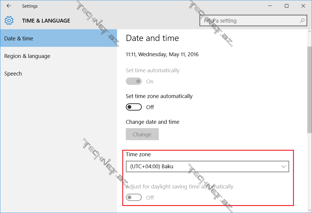 Yeniləmələrin quraşdırılması və kompüterinizin yenidən yüklənməsi uğurla başa çatdıqdan sonra START -> SETTINGS -> TIME & LANGUAGE -> DATE & TIME bölməsində yenidən baxsanız Yay/Qış vaxtına keçidin tamamilə söndürüldüyünü müşahidə edəcəksiniz.