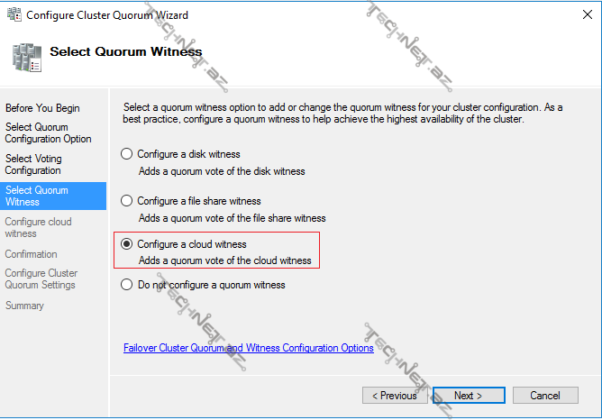 6. Cloud Witness: Stretch Cluster həlli üçün önəmli yeniliklərdən biridir. Windows Server 2012 mühitində müzakirə olunan önəmli mövzulardan biri idi. Bu tip ssenarilərdə witness üçün istifadə etdiyimiz 3-cü bölgə yerinə Microsoft Azure üzərindəki bu xidmətdən yararlana bilərik.