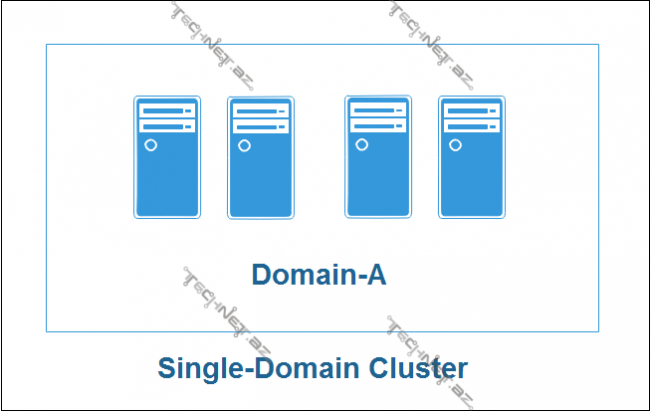 a) Single-Domain Clusters: Bu metod əvvəlki ƏS-ləri tərəfindən dəstəklənən və davam edən funksionallıqdır. Hyper-V tərəfdə Live Migration kimi funksionallığın önəmli olduğu mühitlərdə tövsiyə olunandır.