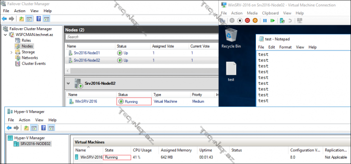 h) CSV bağlantısı qısa zaman ərzində bərpa olarasa VM fəaliyyətinə davam etmiş olacaq. Təbii olaraq Cluster mühiti üçün bir storage kəsinitisinin baş verməsi ən böyük risklərdən biridir. Və bu misaldakı kimi hər zaman uğurlu olmayacağıq, ona görə də VM-lərin failed moda düşməsi bir çox hallarda qaçınılmazdır.