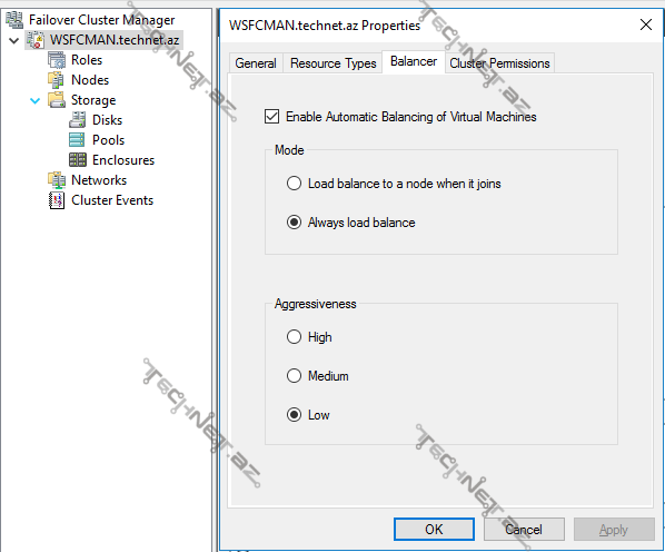 5. VM Load Balancing: Windows Server 2016 -dakı Cluster mühiti üçün digər yeniliklərdən biridir. Host üzərində CPU və RAM səviyyəsində yükləri analiz edərək avtomatik Virtual maşınların Cluster mühitində balanslaşmış şəkildə fəaliyyət göstərməsinə imkan yaradır. SCVMM -tərəfdə mövcud olan Dynamic Optimization bənzəri funksionallığı həyata keçirir. Default olaraq aktivdir.
