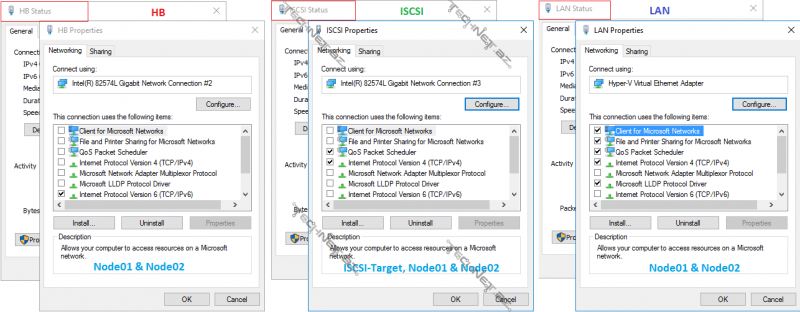 a) NODE – Bu anlayış Cluster mühitinə daxil olmuş üzvlərə (Server və s. təyinatına görə dəyişə bilər) verilən addır. Node01, Host01 dediyimiz anlayış Server01 anlayışıdır. Sadəcə texniki olaraq adlandırma bu şəkildədir. Nodlar əsasən Active/Passive olaraq iki yerə bölünür. Adından da göründüyü kimi Nodun bir Cluster mühitində tam xidmət göstərərkən digəri hər hansı bir fail anında xidməti öz üzərinə alacaq Passive modda gözləyən Noddur. Microsoft tərəfdə artıq Nodlar Active/Active xidmət modunu dəstəkləməktədir.