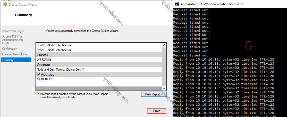 13. Finish – Sağ tərəfdə eyni zamanda Clusterin idarəetmə ipsinin pingləndiyini görürürk.