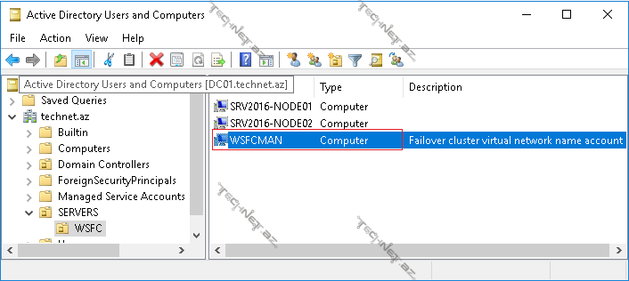 15. Active Directory tərəfdə yeni WSFCMAN adında obyektin yarandığını təsdiqləyirik. Burda bəzən bilinən bir problemlə rastlaşa bilərsiniz (Növbəti məqalədə izah olunacaq).