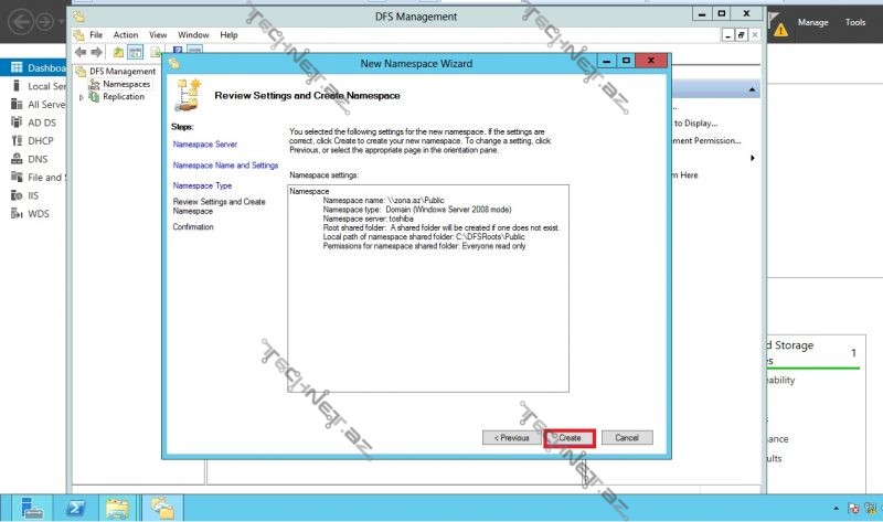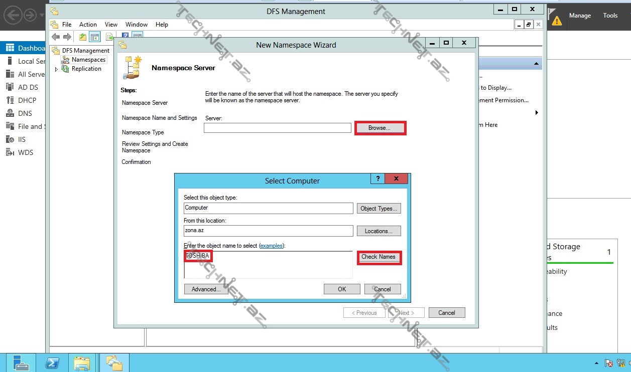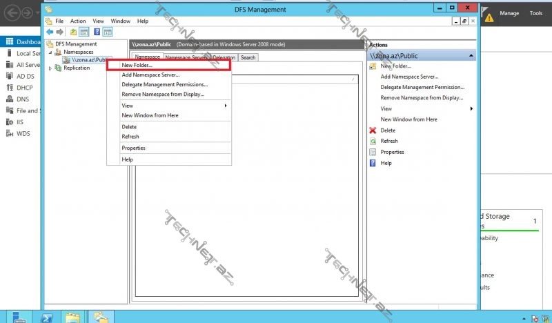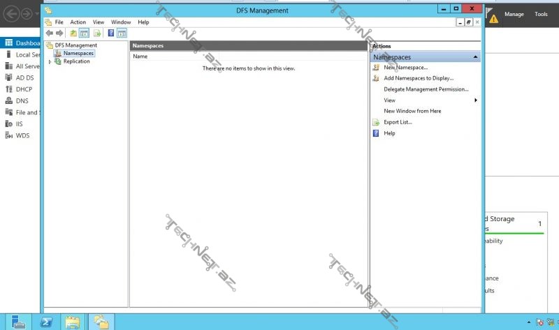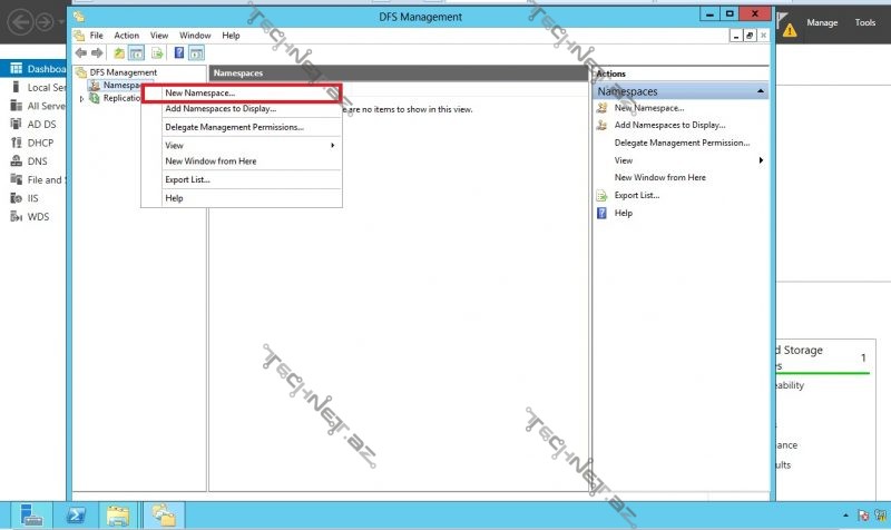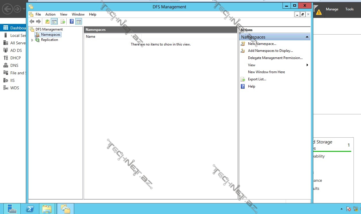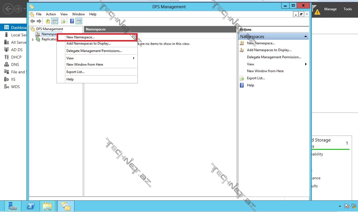 Əsas serverə gəlib Dfs də Namespacesə sağ klik edib New namespacesə daxil oluruq.