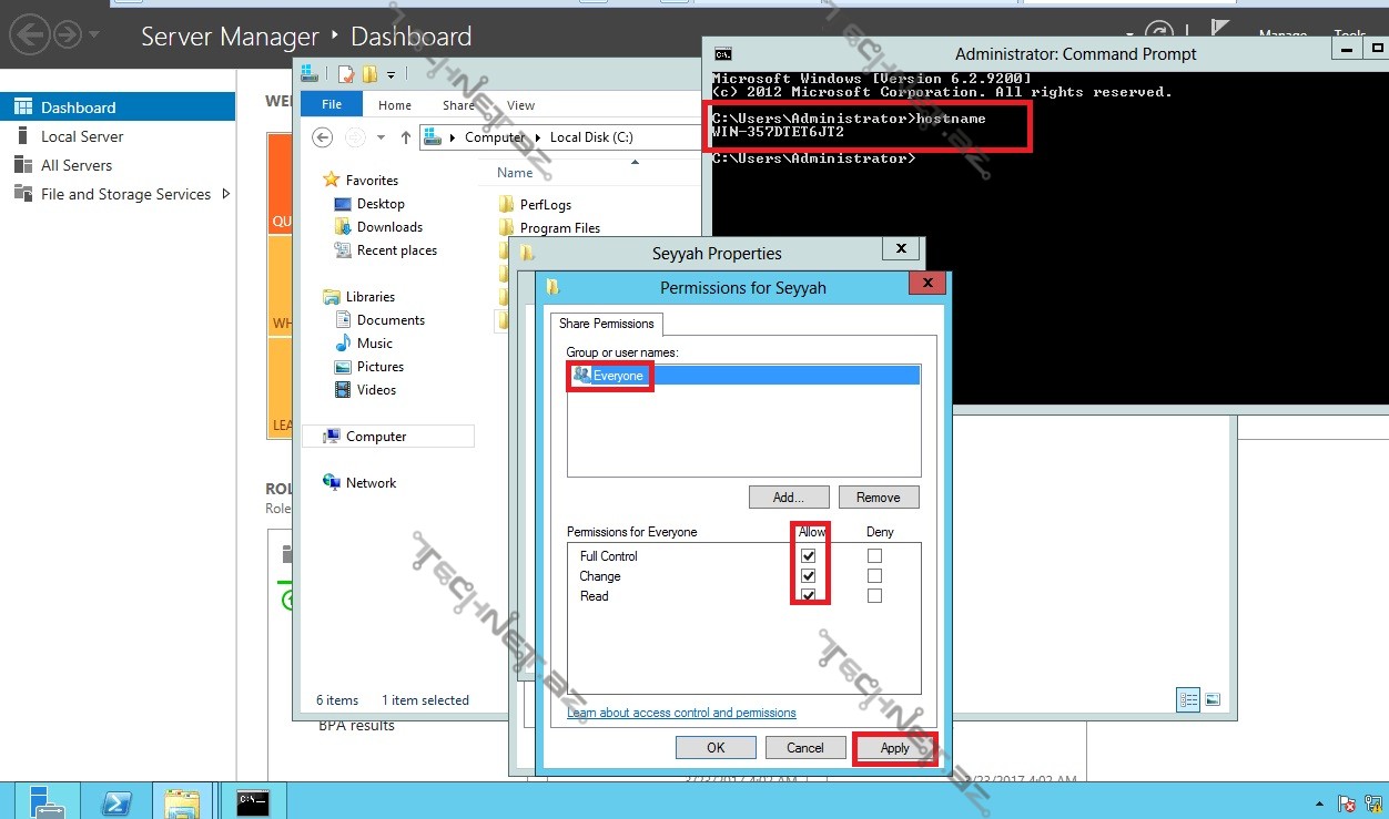 Daha sonra WIN-357DTET6JT2 adlı serverə daxil olub Seyyah adlı qovluğu hər kəsə Full control etdib Apply etdik.