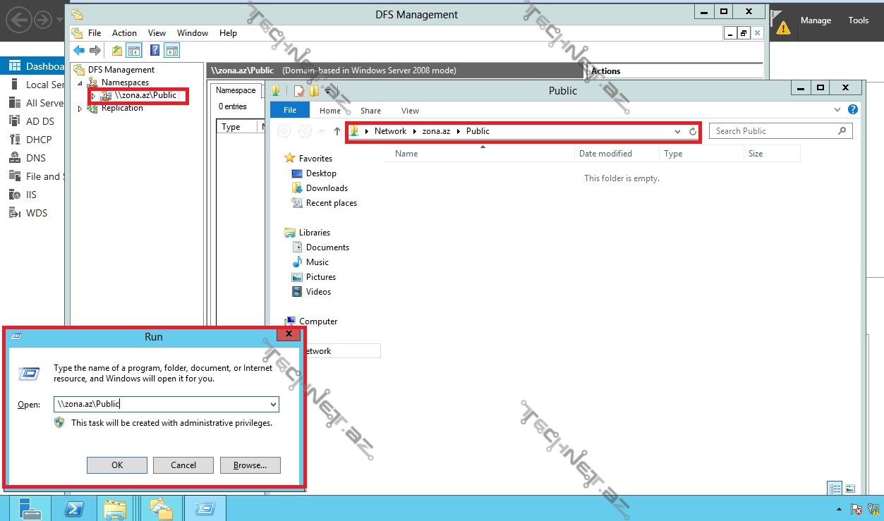 DFS namespace ilə fərqli serverlərdə olan qovluqları Public qovluğa toplamaq
