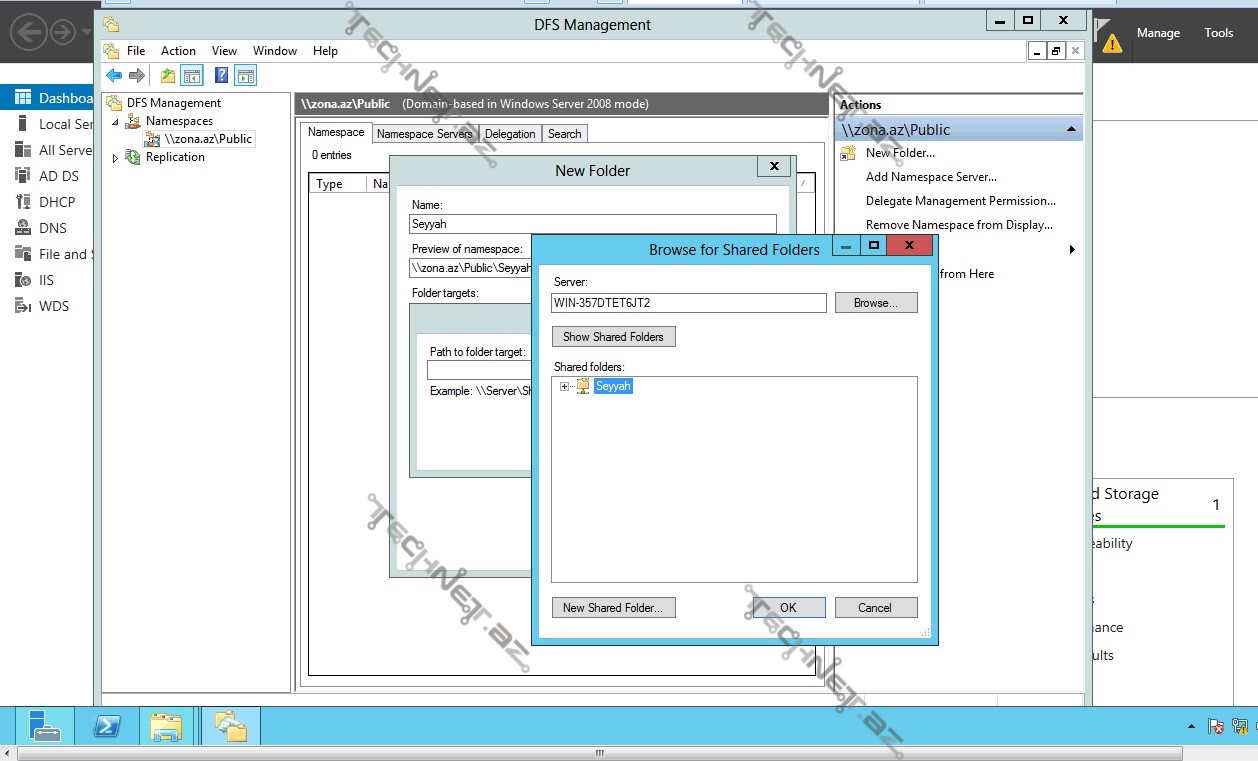 Salam Dostlar Bu gün sizlərə DFS namespace ilə fərqli serverlərdə olan qovluqları Public qovluğa toplamağı göstərəcəm.
