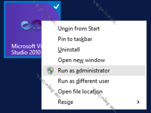İlk öncə “Start” menyusunu daxil olaraq “Microsoft Visual Studio 2010”-u Administrator adınan açırıq.