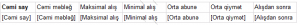 - Hər satılan mal üzrə umumi göstərici ( 4 cədvəl: Hər biri 4 sütun və 2 cərgə)