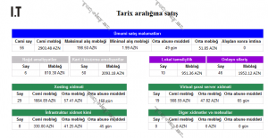 - Ümumi satış haqqında məlumat ( 1 cədvəl: 7 sütun və 2 cərgə)
