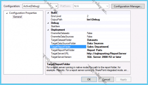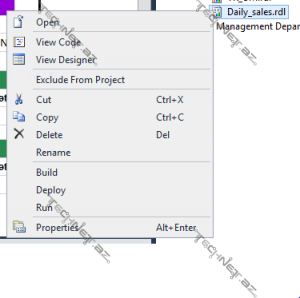 Beləliklə hesabat hazırdır. Hesabatı serverdə dərc etmək üçün “İTSER” proyektinin ayarlarına daxil olub “TargetReportFolder” xanasının dəyərini Satiş Şöbəsinin SSRS serverində qovluğuna yönləndirmək lazımdır. Hesabat “TargetServerURL” addresi üzrə “TargetReportFolder” govluğunda dərc olunacaq.