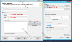 İlk öncə biz Məlumat Mənbəsi yaratmalıyıq və ona ad verməliyik. Mən ona “ITSER_HO” adı verdim. Qoşulacağımız MBİS Microsoft SQL Server-dir. Seçib Edit vasitəsi ilə qoşulma məlumatların yeni açılacaq pəncərəyə daxil edib OK və OK basıb davam edirik.