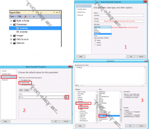 Hesabat ilə tanış olmaq üçün “Preview” –a tıklamaq lazımdır, amma hələ ki hesabat işləməyəcək. İşləməsi üçün sorğiuda qeyd olunmuş parameterlərin tipini və standart dəyərlərini qeyd etməliyik. Onları sazlamaq üçün ekranın sol tərəfində yerləşən “Report Data” panelinə daxil olub Parameters qovluğunda parameter üzərinə tıklamaq lazımdır.