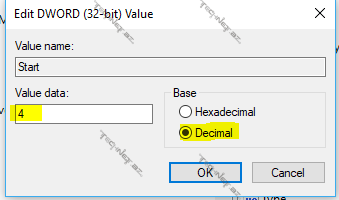 Start yazılan bənddə dəyəri göstərilən kimi edirik. Normalda dəyər 1 olur amma biz onu 4 edirik. Base dəyəri isə Decimal edirik.