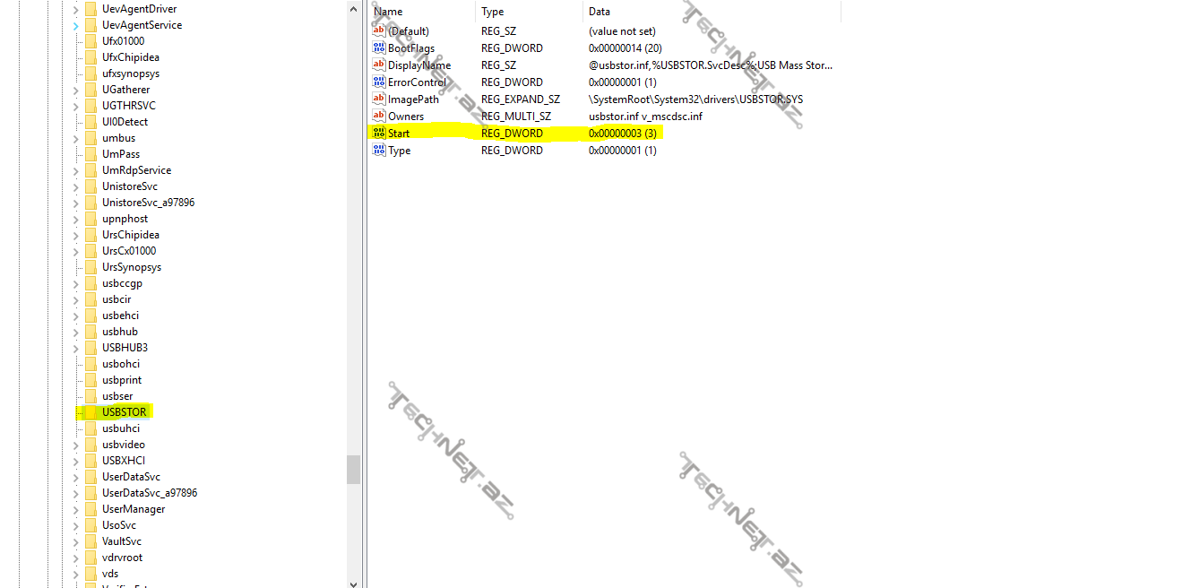 Daha sonra isə flash card deactive edək. Burada USBSTOR daxil oluruq.