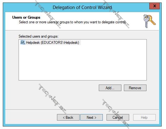 Salam Dostlar! Bu məqaləmizdə şirkətlərdə geniş istifadə olunan bəzi istifadəçilərə domain mühitində müyyən hüquqları verməyi öyrənəcəyik. Nümunə üçün belə bir senari fikirləşək. Hər hansı bir şirkətdə texniki xidmətdə çalışan əməkdaşlar var. Biz istəyirik ki, texniki xidmətdə çalışan əməkdaşlara hüquq verək ki, onlar öz istifadəçi adları ilə digər istifadəçilərin hesablarının şifrəsini sıfırlaya bilsinlər. Bunun üçün biz delegate control istifadə edəcəyik. Delegate control icazələrini istifadəçilərə yox, qrup şəklində tətbiq edəcəm. Bunun üçün “helpdesk” adında qrup düzəldib, bura istifadəçiləri üzv edəcəm. Bir şeyi də bilməyimizdə fayda var ki, delegate control icazələri organizational units tətbiq edilir.