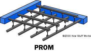Fərq – hər sütun və sətir kəsişmələri xüsusi “əriyən qoruyucu” (fuse) vasitəsilə təmin edilir. Programmer vasitəsilə bütün bu kəsişmələr fuse vasitəsilə 1 dəyərinə gətirilir və beləliklə blank, yəni boş ROM-un bütün xanaları doldurulmuş, proqramlaşdırılmış olur. Bu dəyərləri 0 etmək üçün programmer vasitəsilə xüsusi miqdarda cərəyan hər həmin xanaya ötürülür. Nəzərə almaq lazımdır ki, yüksək ölçüdə gərginliyin olması sətir və sütunlar arasında olan əlaqənin kəsilməsinə səbəb ola bilər , bu isə PROM-un yanması deməkdir (burning the PROM).