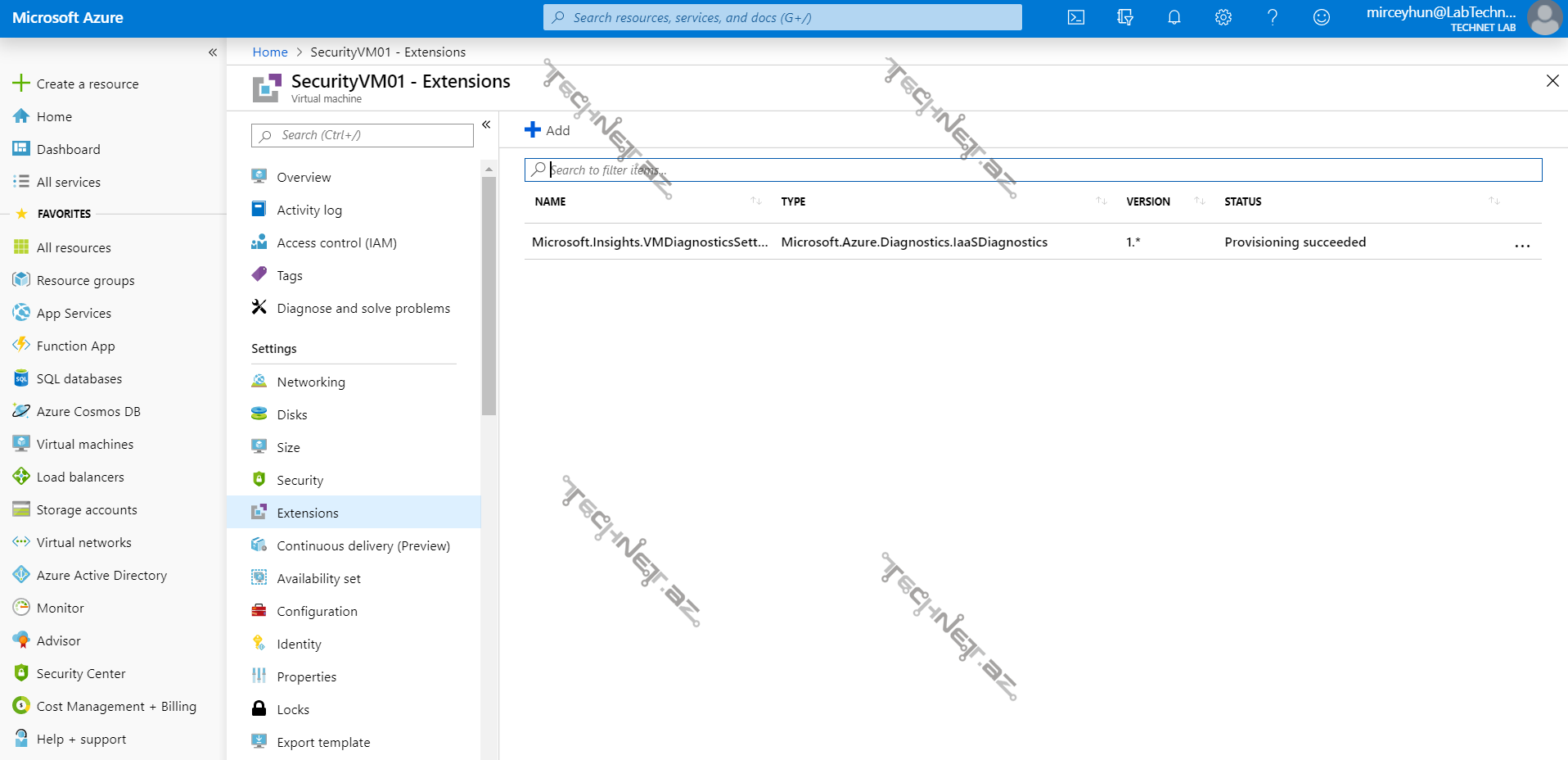 - Virtual maşınlarda – Azure Portalda Security Extensions vasitəsilə