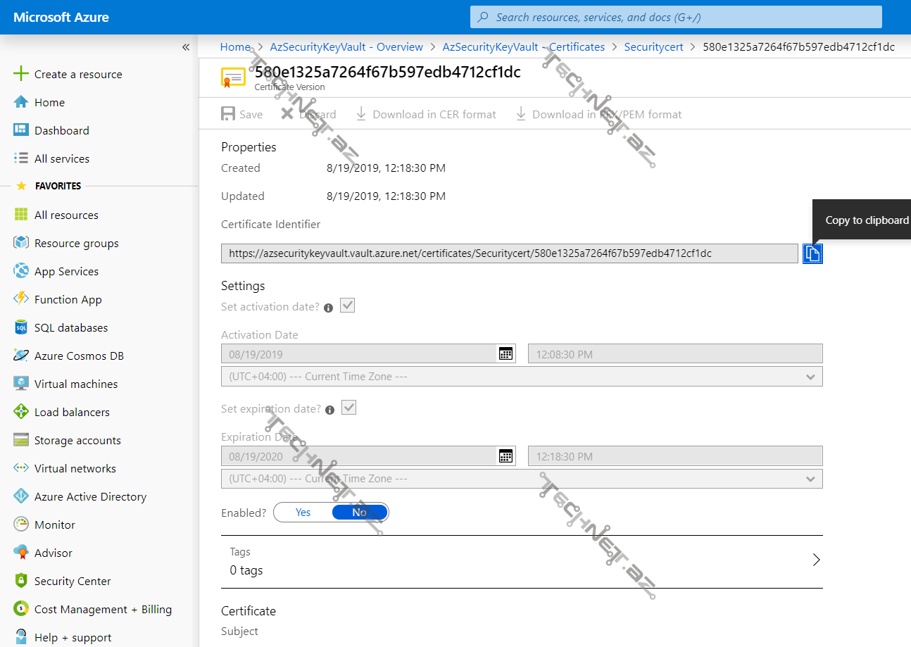 Bu parametri enable etdiyimizdə Azure Virtual maşınlar bu Key Vault-a müraciət edərək Certificate əldə edə biləcəkdir.