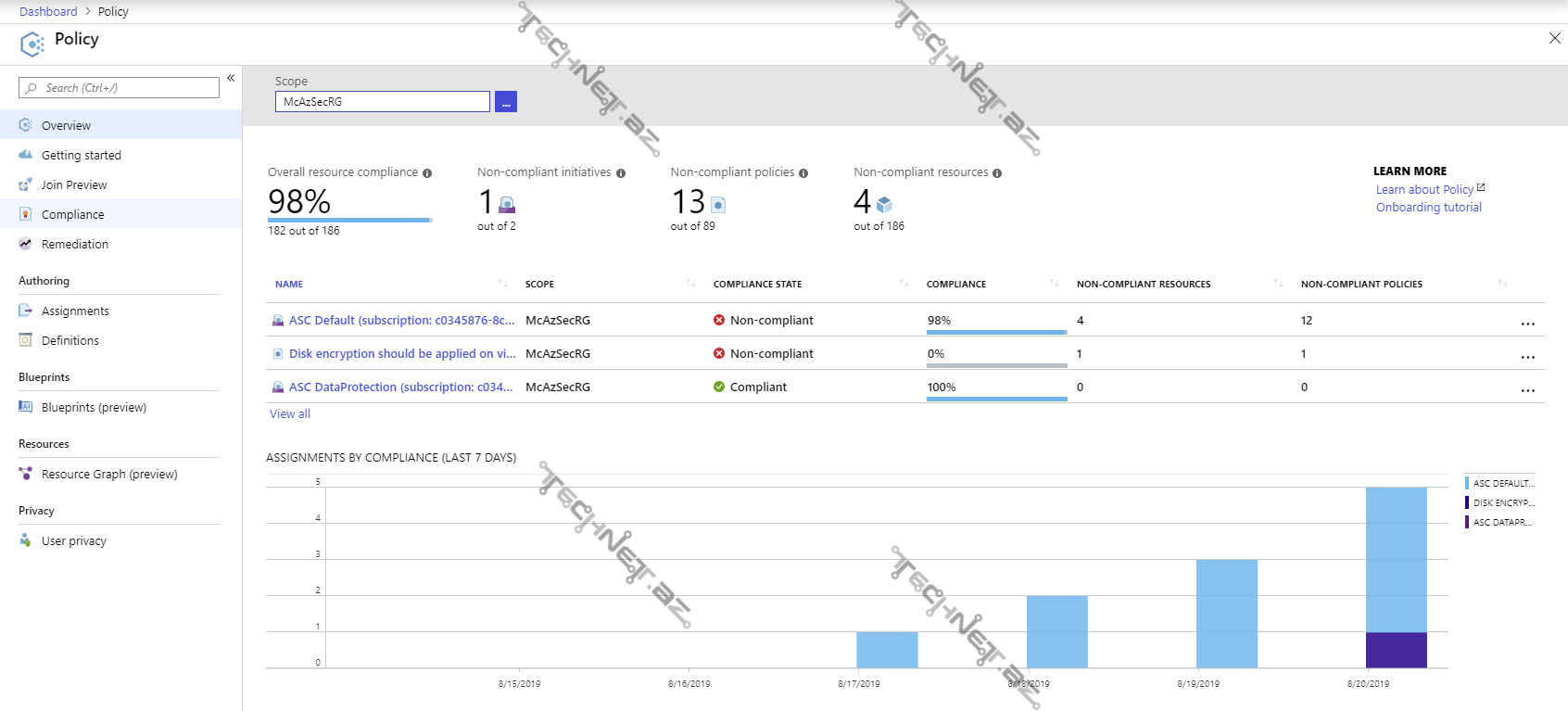 - Scope – Policy və İnitiative-lərin təyin edildiyi səviyyə. Bunlar -management Group, Subscription və ya Resource Group ola bilər.