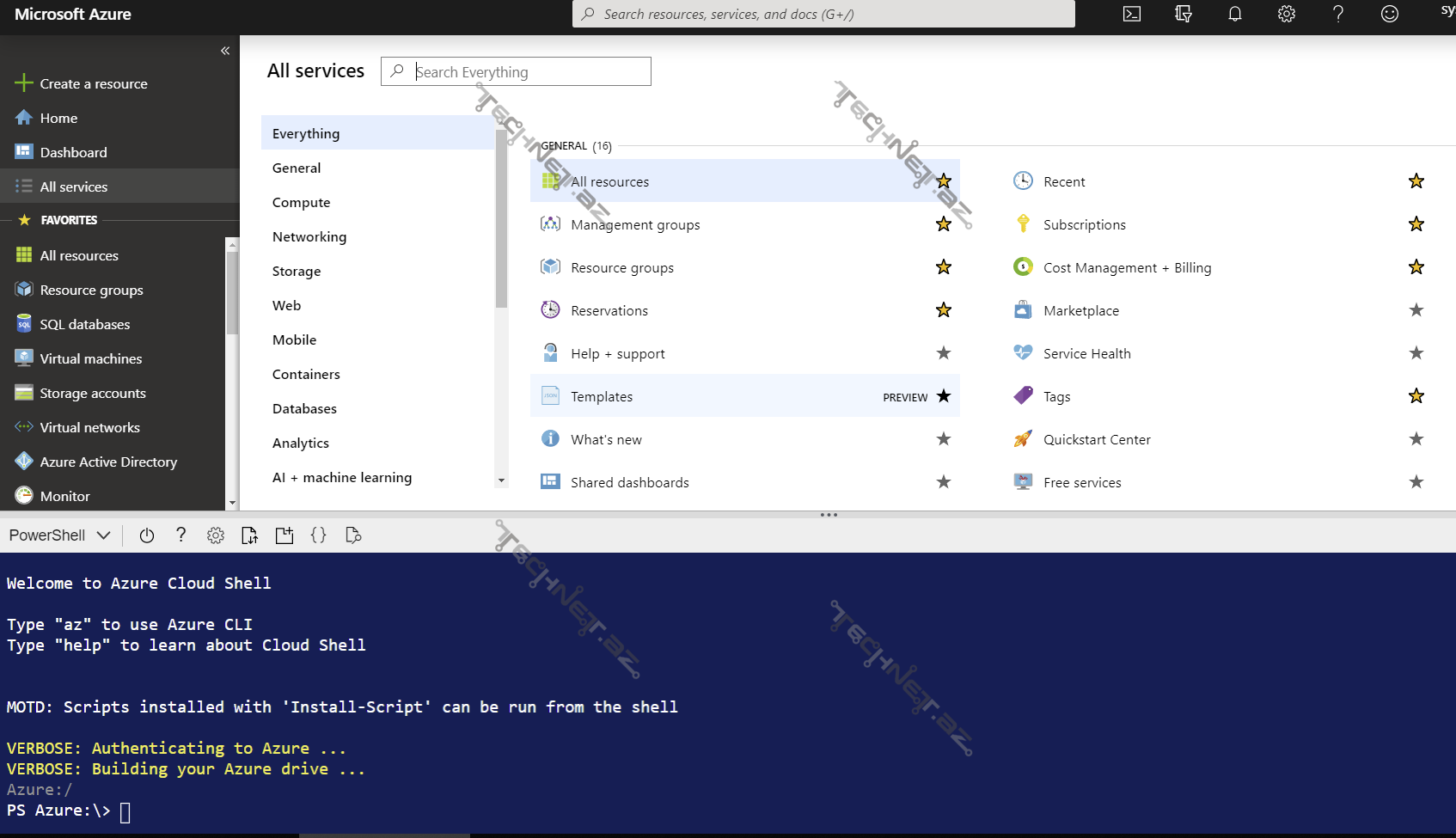 1. Azure portalda Cloud Shell düyməsini basaraq, PowerShell konsolu aktivləşdirək