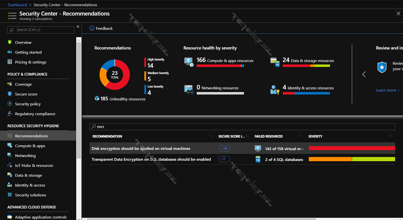 Azure Disk Encryption Azure Security Center xidmətinə inteqrasiya edilmişdir. Azure Security Center – Azure resurslarına aid təhlükələri aşkar edib və onlara qarşı cavab tədbirləri görməyə imkan yaradan bir komponentdir. Azure Security Center -in təqdim etdiyi imkanlar növbəti bölümlərin birində təqdim olunacadır.