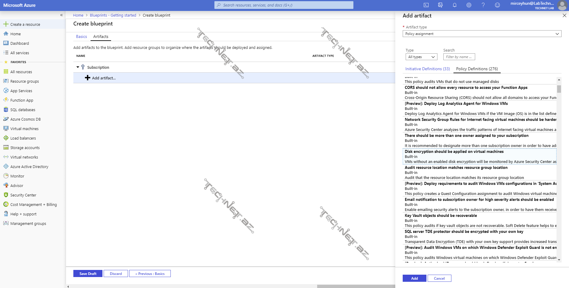 - “Add Artifact” düyməsinə basaraq istədiyimiz artifact-ı əlavə edin (Nümunədə: Policy assignment)