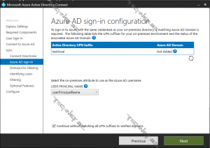 8.Azure AD –də istifadəçi adının lokal AD də hansı atributa uyğun olması üçün seçimi qeyd edirik vəNext sıxırıq.