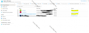 14.Azure portaldan Azure Active Directory- Users seçməklə dəyişiklikləri, eləcə də lokal AD dən sinxronizasiya olunmuş istifadəçiləri görə bilərik.