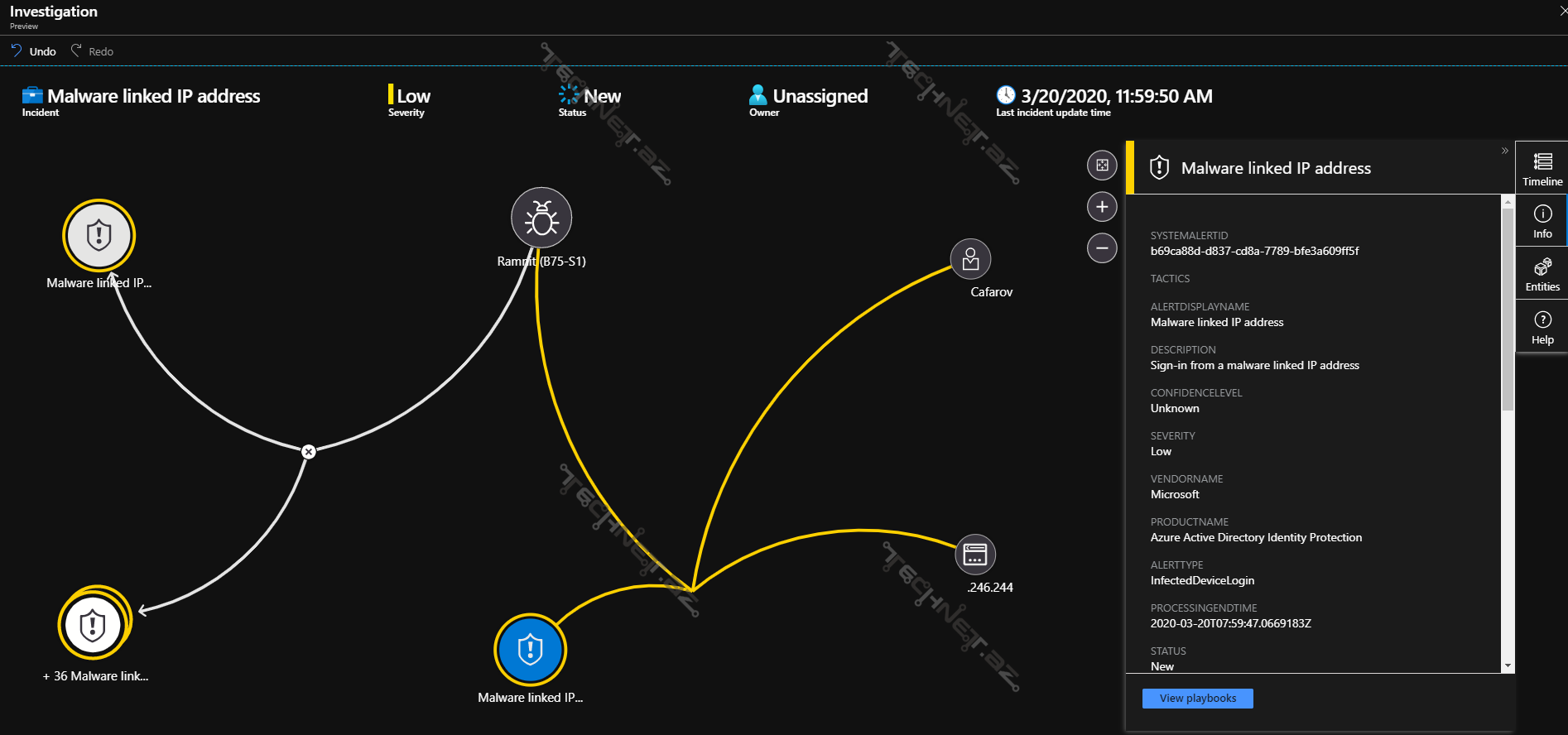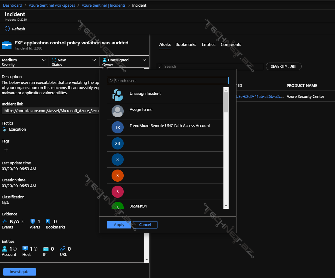 Bu pəncərədə siz insidentlə birbaşa və ya hər hansı formada əlaqəsi olan bütün resursları görə, onlar haqqında məlumat ala və sistemdə etdikləri dəyişiklikləri izləyə bilərsiniz.