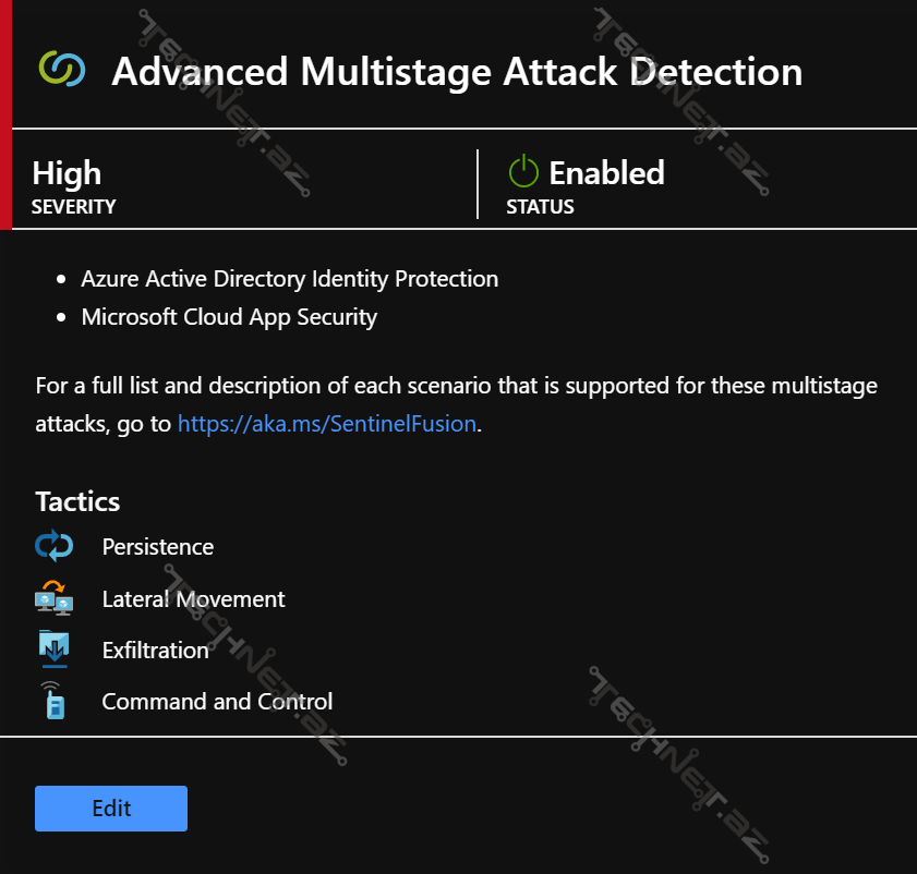 Bu texnologiya vasitəsilə, Azure Sentinel çox mərhələli hücumları (multistaged attacks) aşkar edir. Fusion texnologiyası bir çox müasir metodlardan və təcrübələrdən istifadə edərək boşluqları kifayət qədər effektli şəkildə aradan qaldırmağa kömək edir. Default olaraq Fusion aktiv olur, lakin kodlaşdırılma məntiqi qapalı şəkildə olduğuna görə siz bu tip qaydaları şablon kimi istifadə edə bilmərsiniz.