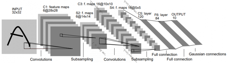 • LeNet-5. Bu arxitektura 1998-ci ildə Yan LeCun tərəfindən təklif olunmuş, MNIST adlanan əlyazma rəqəm şəkillərindən ibarət baza ilə sınanmışdır. 60000-ə yaxın öyrədilə bilən parametri var.