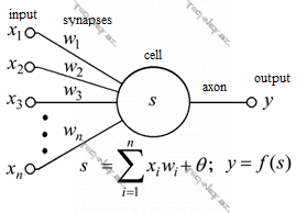 20-ci əsrin 50-ci illərində Makkallok və Pits insanın sinir hüceyrələrinin fəaliyyətinin hesablama modelini tədqiq etməklə, bioloji neyronun imitasiyası olan süni neyronun hesablama modeli kimi istifadəsinə yol açdılar. Bioloji neyronun işi aşağıdakı şəkildə təsvir olunmuşdur.