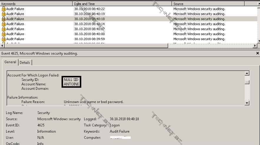 Cavablarınız üçün təşəkkür edirəm. Amma burda bir faktor da var.Loglara baxanda naməlum adlar da görsənir. Hansı ki domainde belə bir userlər yoxdur. Bunlar nələr ola bilər? Bu maşını heç cürə dayandırma imkanım olmadığı üçün domaindən çıxarıb sala bilmirəm.