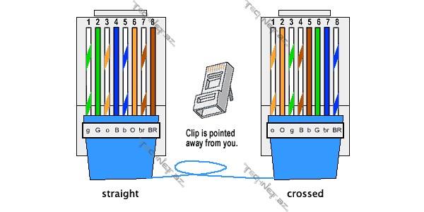Şəkildə gördüyünüz kimi, kabelin bir başında rəng ardıcıllığı başqadır, digərində isə bir başqa. Bu tipli bir kabel tabın yaxud, özünüz hazırlayın.