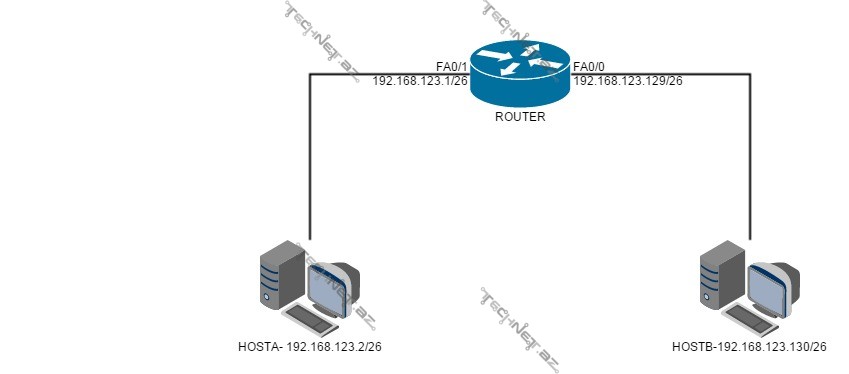 Bizdə hərəsində 50 host olmaqla 3 şəbəkə mövcuddur. Və bizim yalnız istifadə edə biləcəyimiz 192.168.123.0/24 adresi vardır.