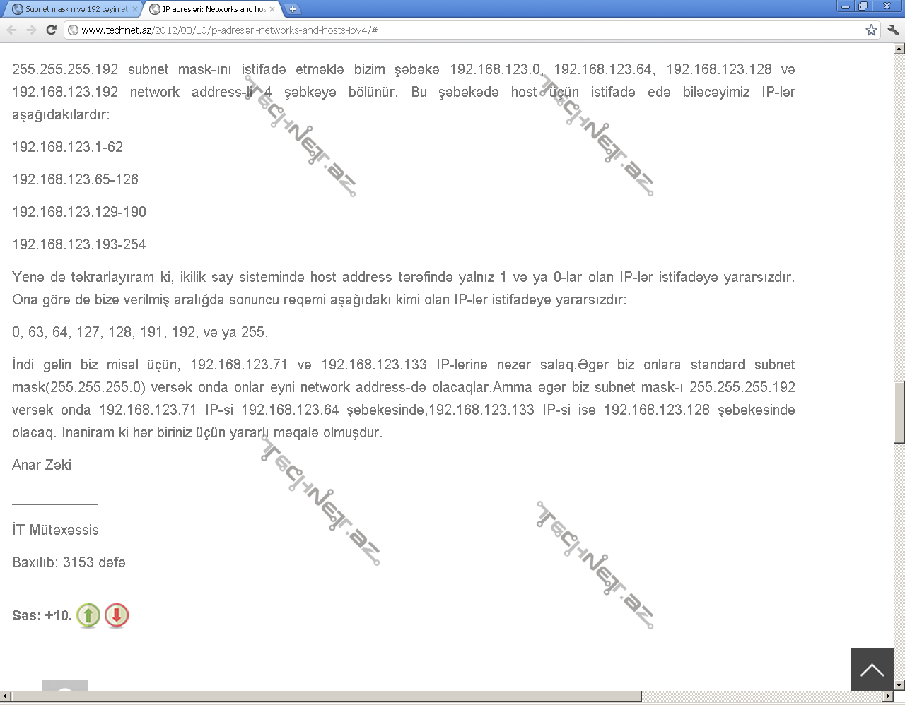 Rizvan müəllim,təşəkkürlər aydın izaha görə.Mən əslində bu sualı Elvin müəllimin qeyd etdiyi IP adresləri: Networks and hosts (IPv4) məqalənin altında yazmışdım,ama nədənsə ayrı bir sual kimi düşdü =) haqqında danışdığım abzas isə bu idi: